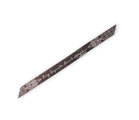 Esta pulsera está confeccionada en tela bordada de color marrón y presenta un diseño lineal y sobrio, pensado para un uso cómodo y cotidiano. El bordado incorpora motivos de granadas junto a la referencia a Fray Leopoldo, integrados de forma armoniosa en el tejido.